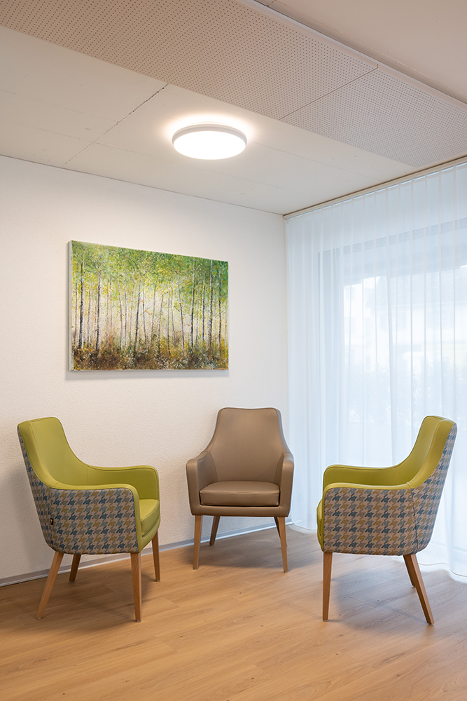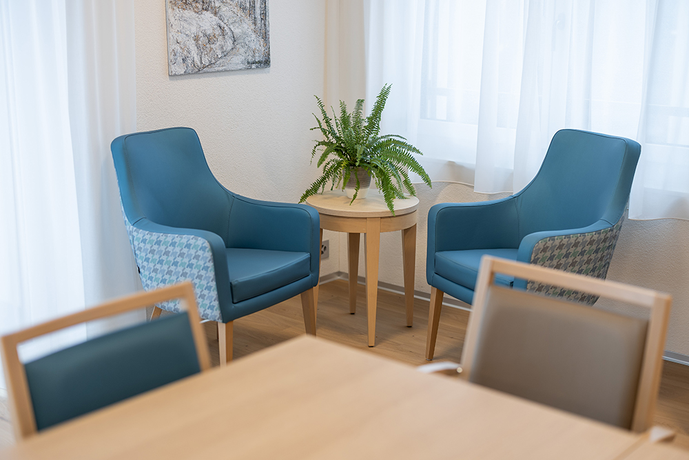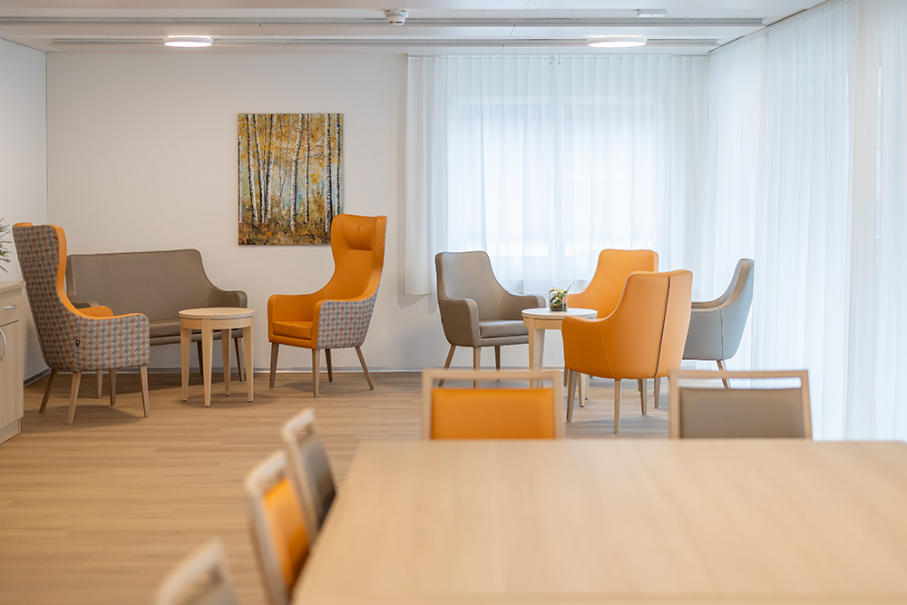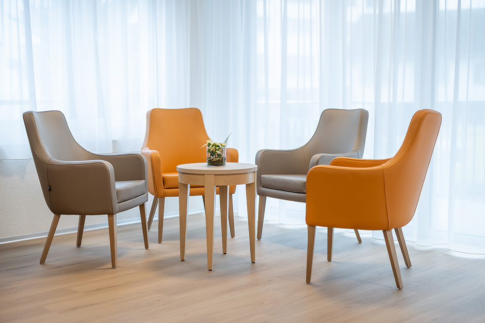Zur Ausstattung der Pflegewohngruppe gehören Sitzgruppen in den Gemeinschaftsbereichen, für die wir von OZG folgende Möbelstücke lieferten: